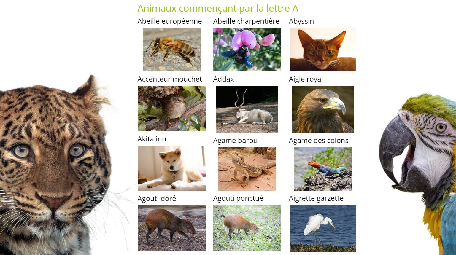 Une liste alphabétique des animaux du monde avec images pour encore plus de confort dans vos recherches. Une exclusivité Diconimoz ! Aujourd'hui découvrez les animaux commençant par la lettre A, en attendant la totalité de l'alphabet à partir du 25 mars 2020. Cliquez sur l'image pour y accéder !