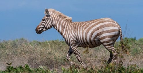 Extrêmement rare, un zèbre albinos également appelé zèbre doré, immortalisé par le photographe Sergio Pitamitz dans le parc national du Serengeti en Tanzanie. (Source - Nat Geo - Wild - France et Nationalgeographic.fr)